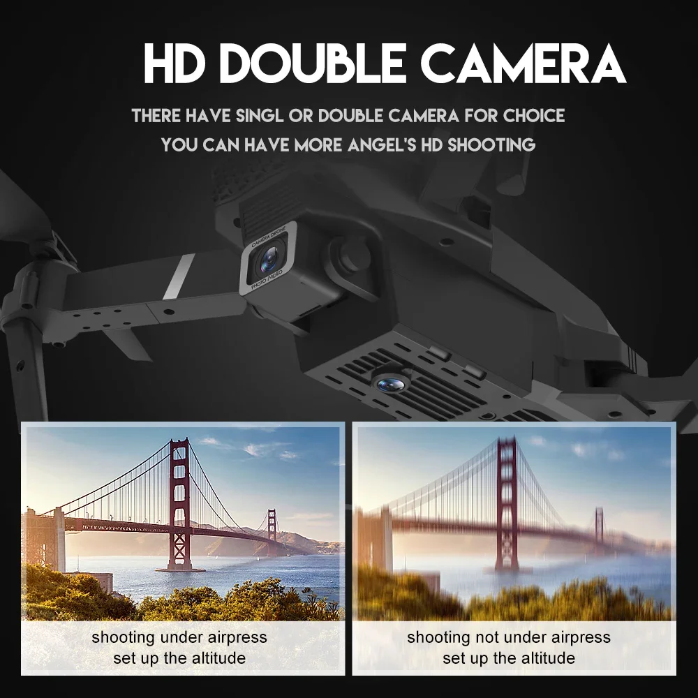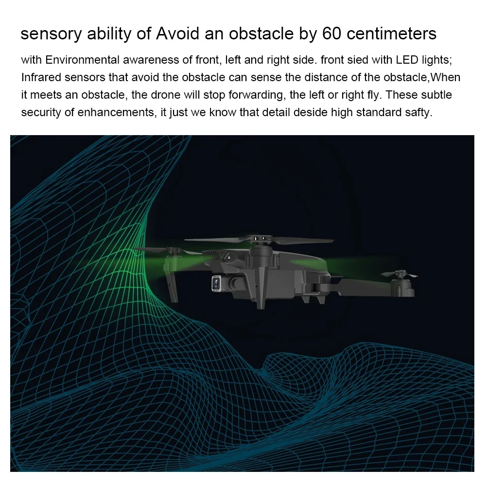 Up/down, Forward/backward, Turn left/right, Sideward flight, 3-level flight speed, LED Light, Headless Mode, One Key Automatic Return, Altitude Hold Mode, WiFi FPV, Trajectory Flight, Camera/Video/Three-sided obstacle avoidance