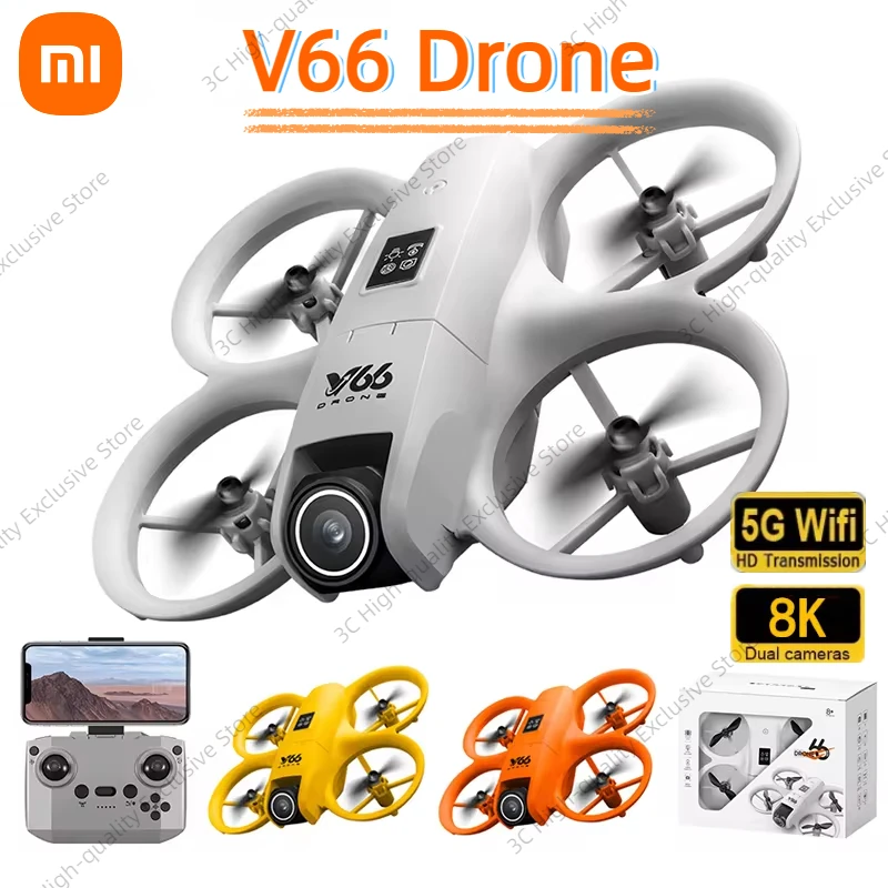 V66 Mini RC Aerial Drone 8K Professinal Wide Angle HD Dual Camera Intelligent Obstacle Avoidance Drone Toy 2025